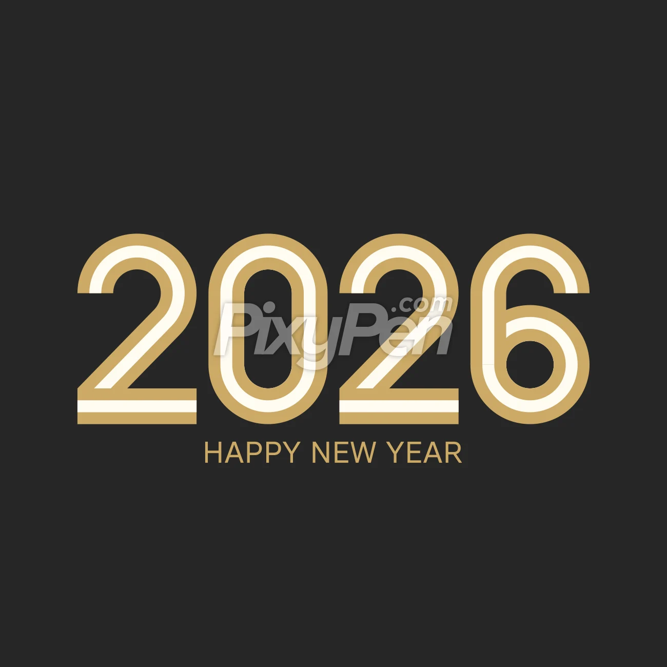 Vector design of a Happy New Year 2026 png clipart. Flat design with golden and white colors. Vector, high-quality JPG, and transparent background PNG.